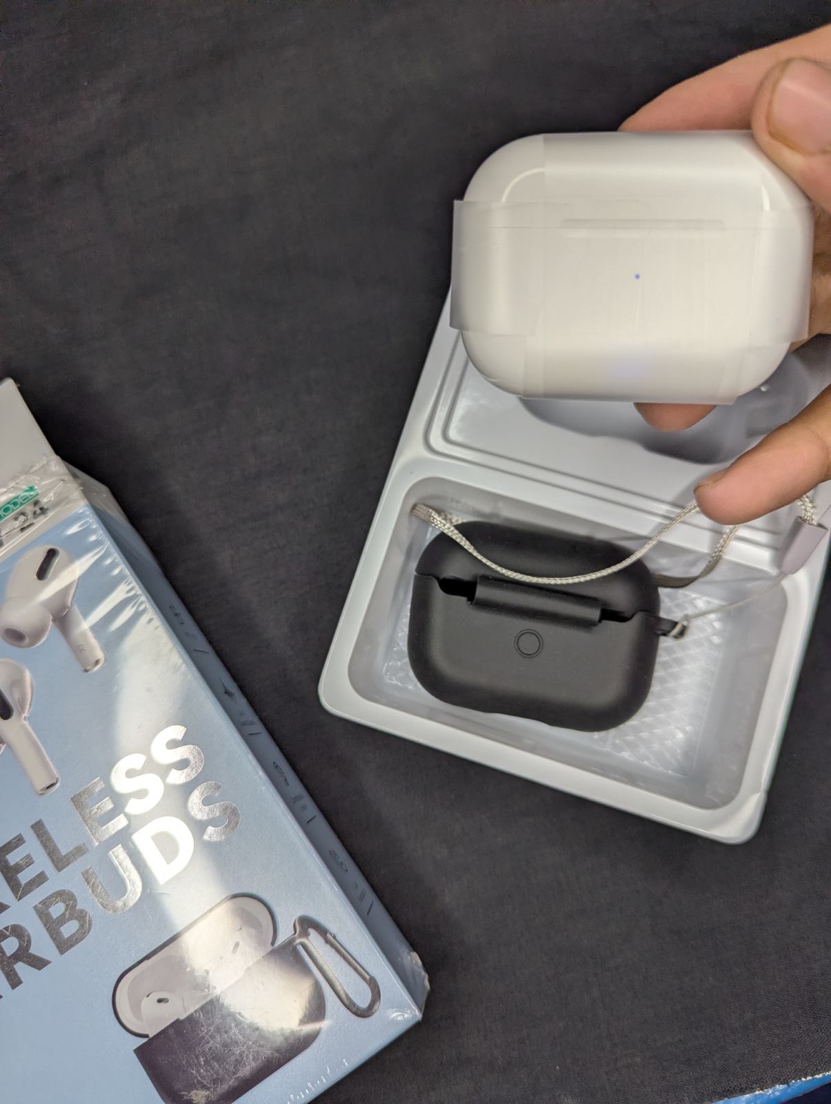 A free silicone cover is included with the charging case, helping protect it from scratches and minor wear during daily use or travel.